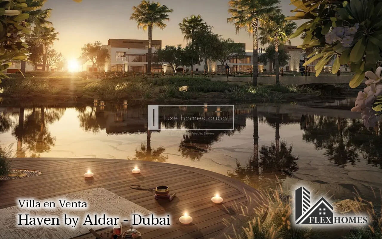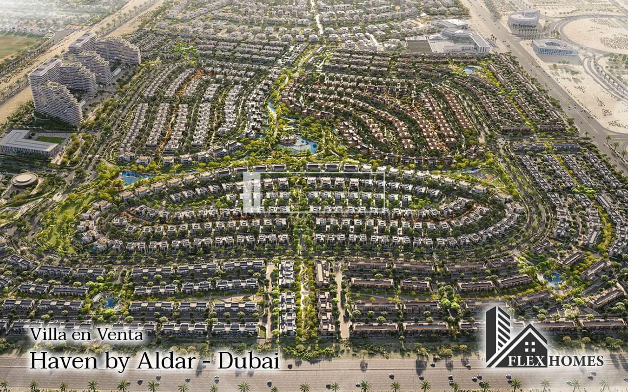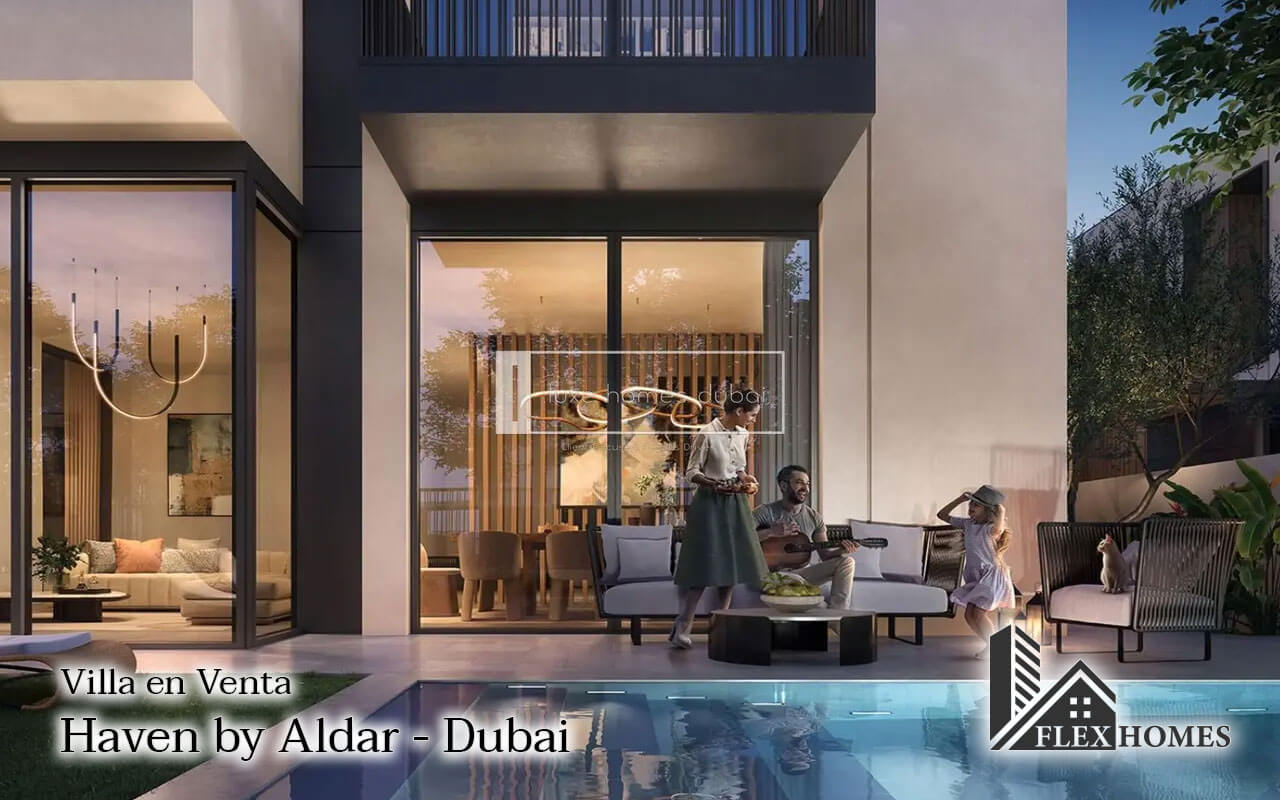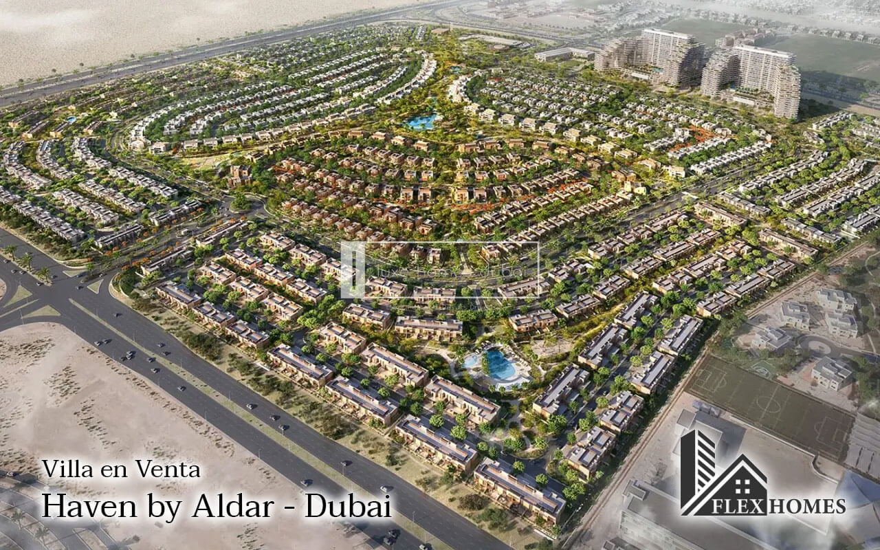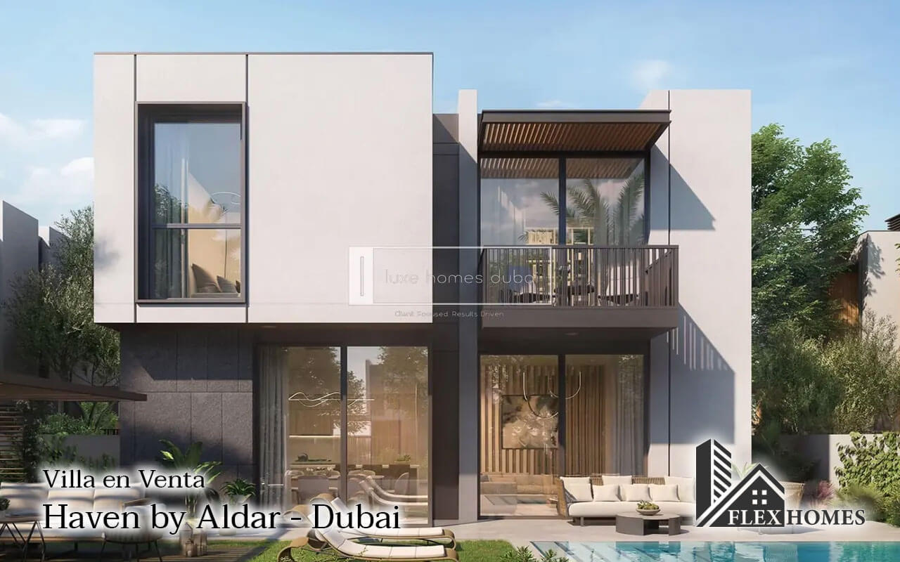 Lujosa villa de cuatro dormitorios ubicada en Haven, de Aldar Properties, en Dubailand. Este prestigioso complejo residencial presenta una combinación armoniosa de bienestar y lujo, y ofrece una variedad de villas diseñadas meticulosamente con comodidades de última generación.